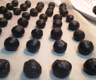 4. Place balls on a baking sheet covered in parchment paper and refrigerate for 2 1/2 - 3 hours to harden.